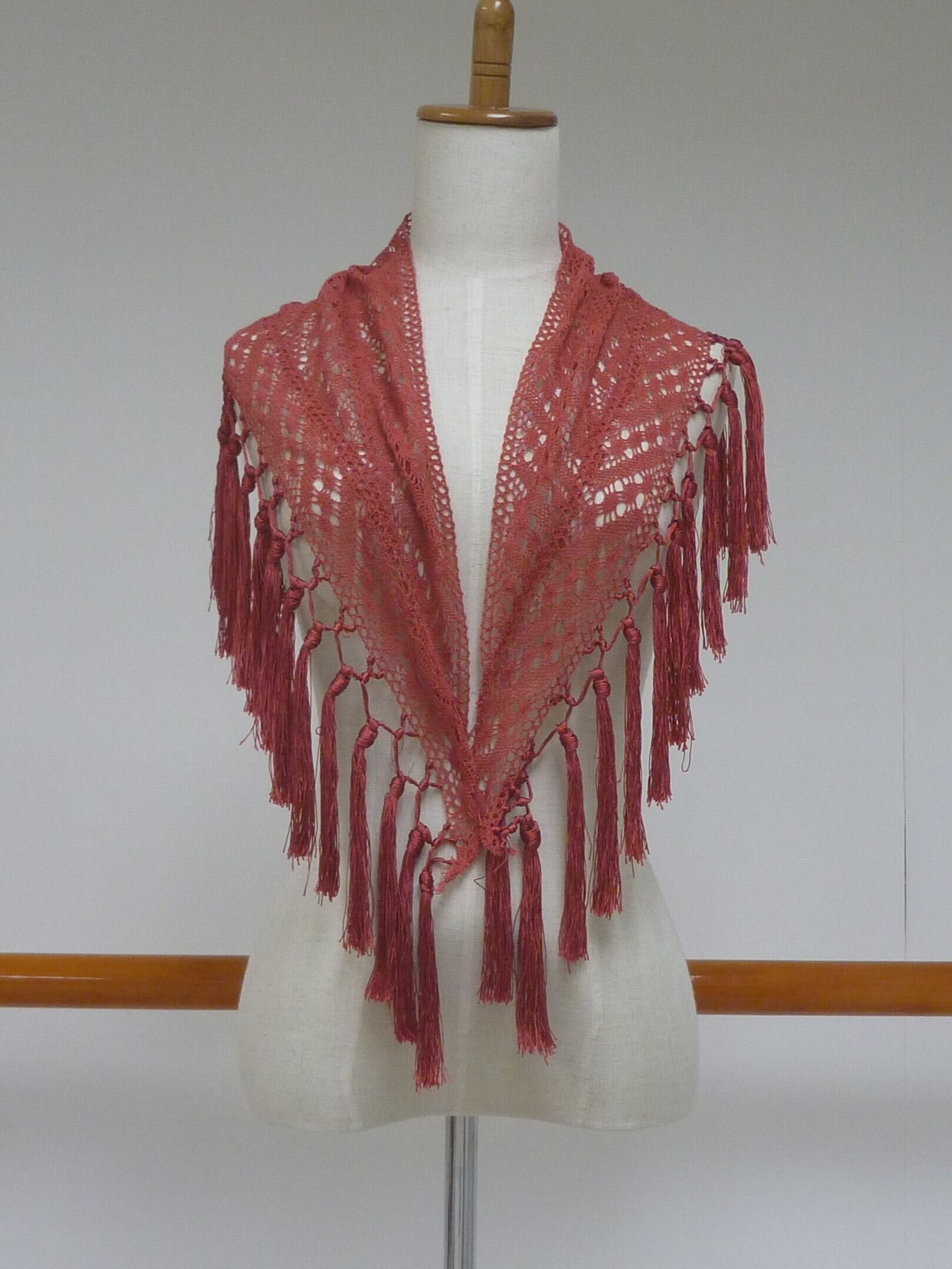 サーモンピンクのレース編みシージョです